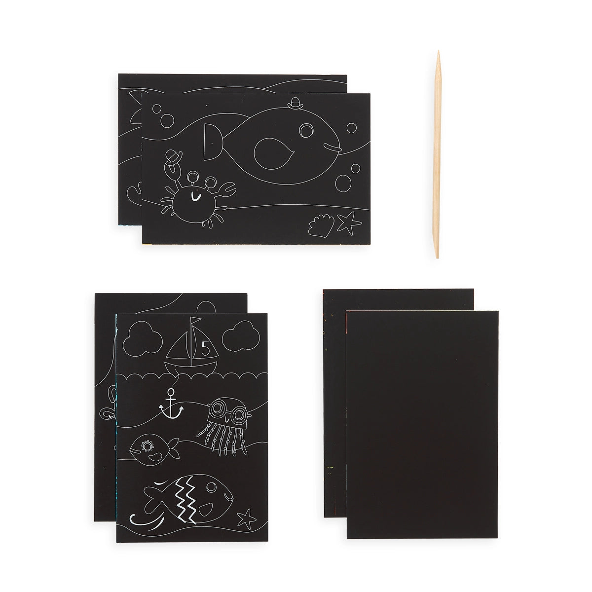 • 4 illustrated scratch cards (4 x 6 inches)
