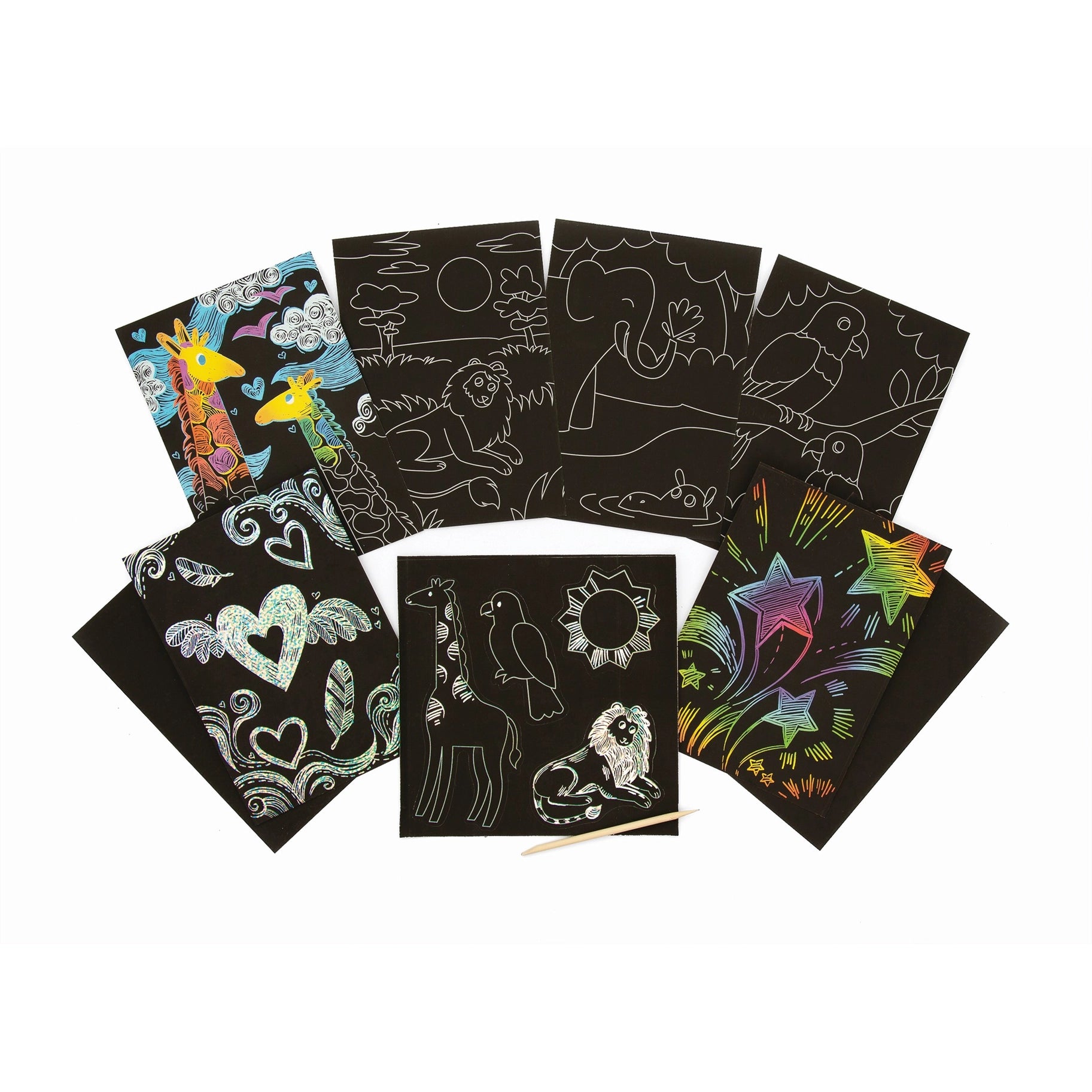 - Safari Scratch and Scribble scratch art kits let you scratch away the black to reveal a rainbow of vibrant colors with every stroke.