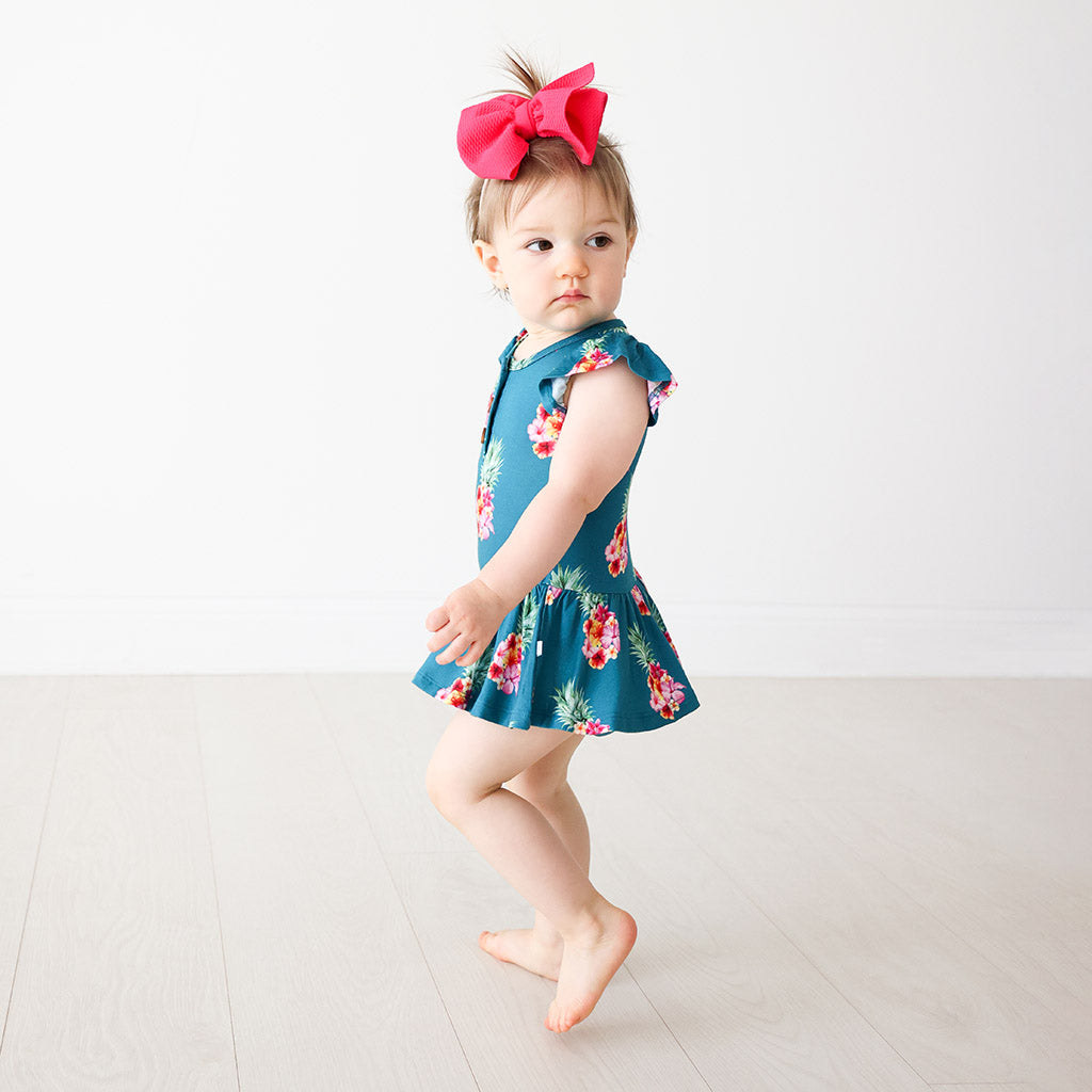 Posh Peanut Ananans Ruffled Capsleeve Henley Twirl Skirt Bodysuit