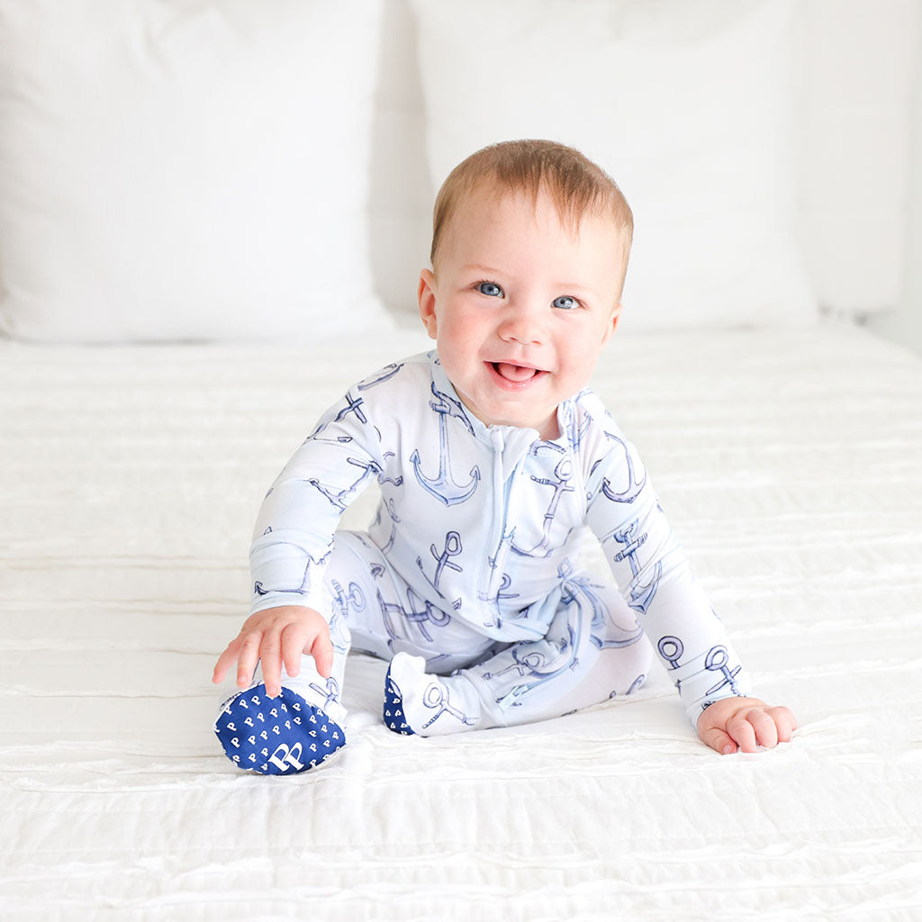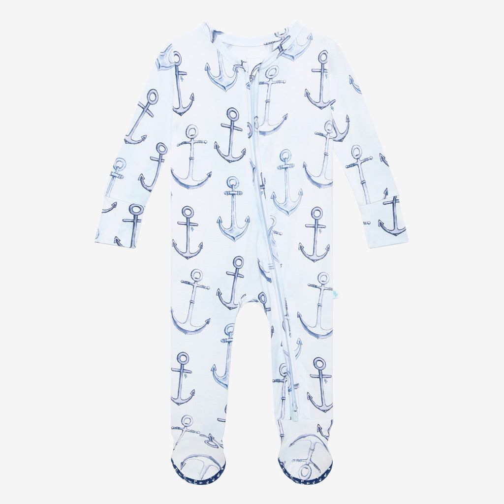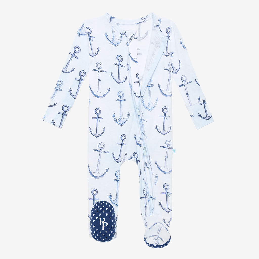 Bamboo one-piece footie with reversible zipper opening. New reversible zippers are perfect for late-night changes and the ease of not undressing your peanut. Zip up or down for a quick change. Signature Posh Peanut Footie grips, elastic backing on footies for a snug fit and fold-over mittens in sizes NB and 0-3M. Buttery soft jammies so cute you can wear them out!