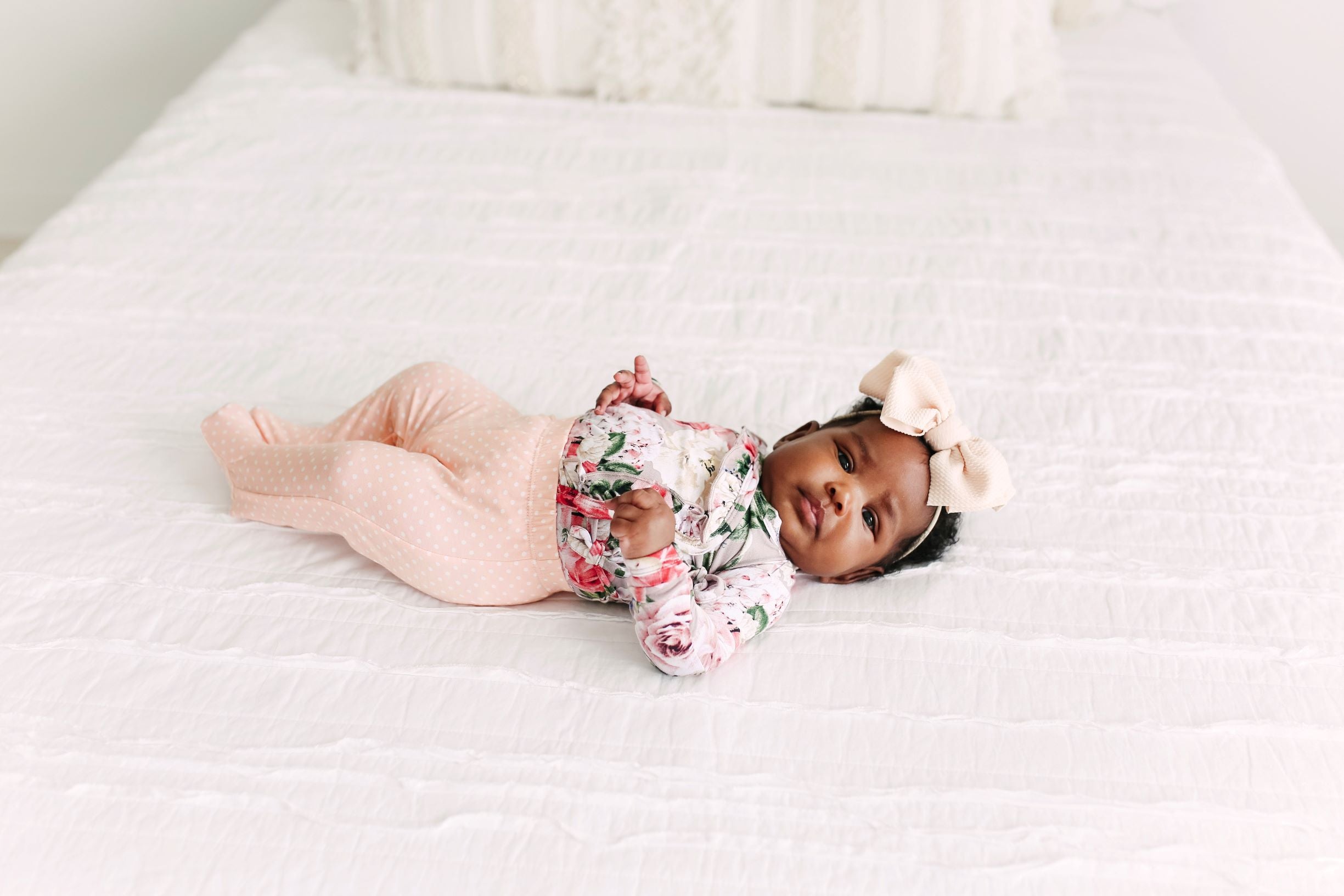Kimono one-piece bodysuit with matching footed jogger in coveted Viscose from Bamboo. Wrap your peanut in style with fold-over kimono style with tie closure. Kimono style is the perfect comfort outfit with smart wrap design and nothing pulled over your peanut's head. Fold-over mittens are added for extra protection from self-scratching and extra warmth. Stretchy bamboo is buttery soft and snuggly for newborns.