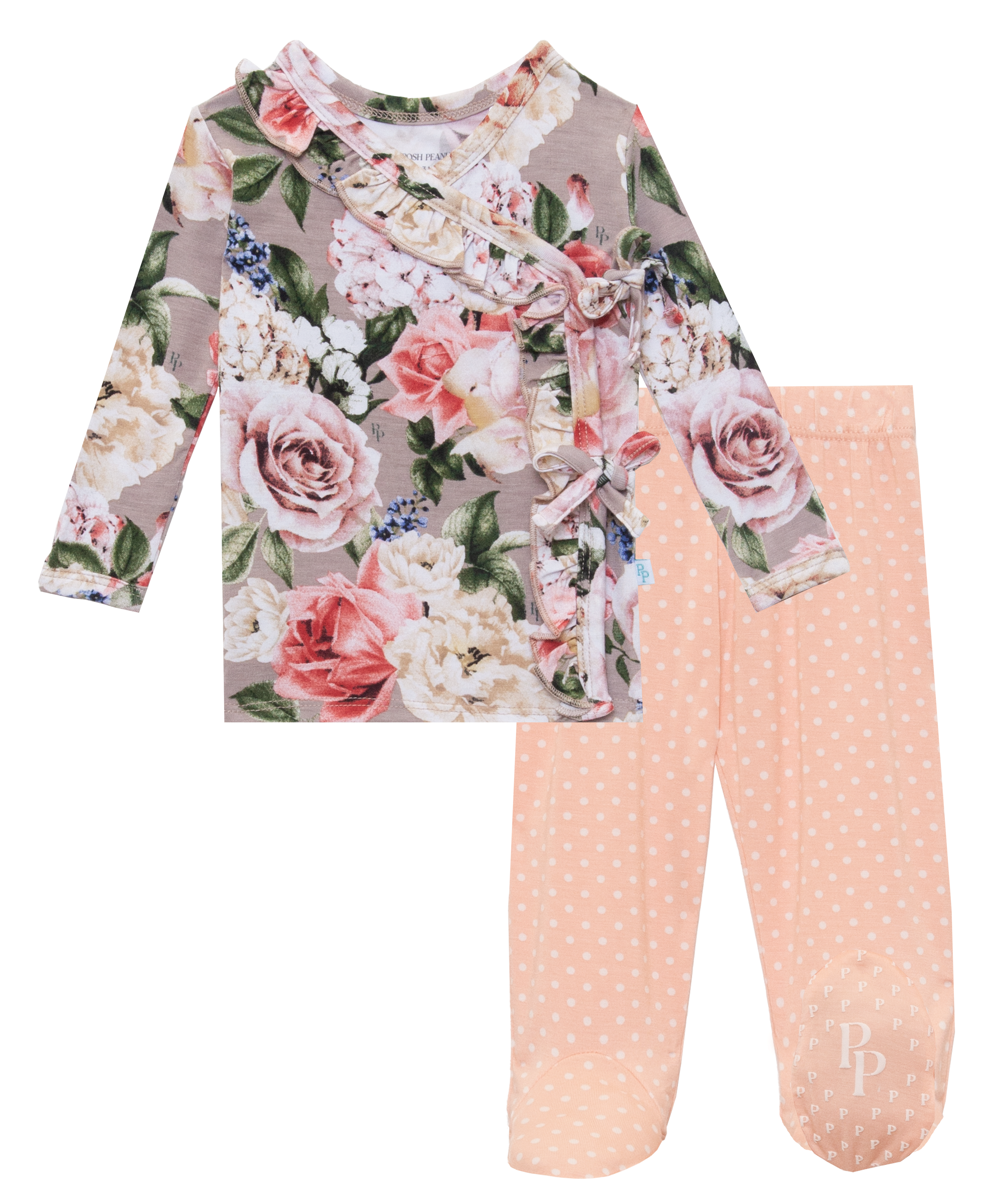Posh Peanut Cassie Tie Front Ruffle Kimono Set