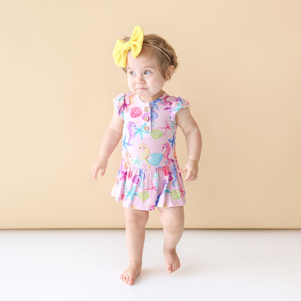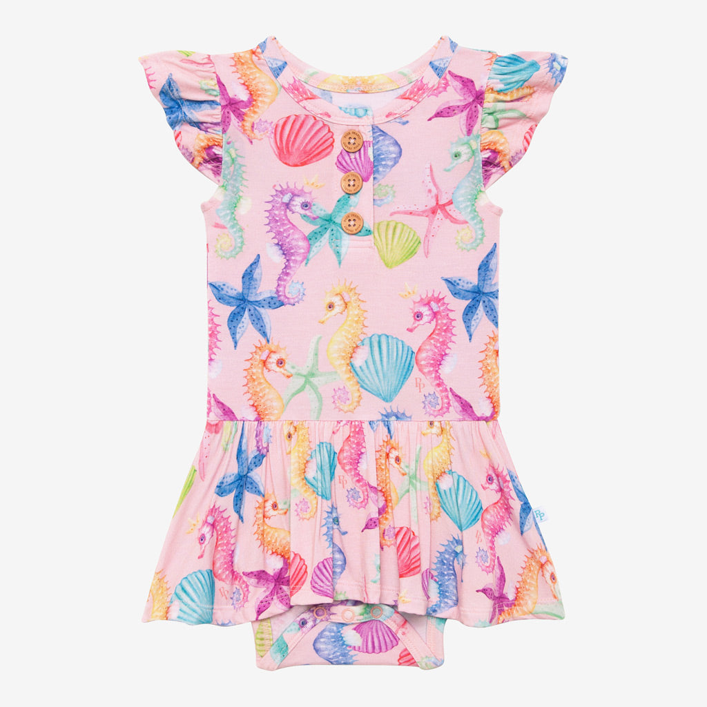 Posh Peanut Coral Ruffled Capsleeve Henley Twirl Skirt Bodysuit