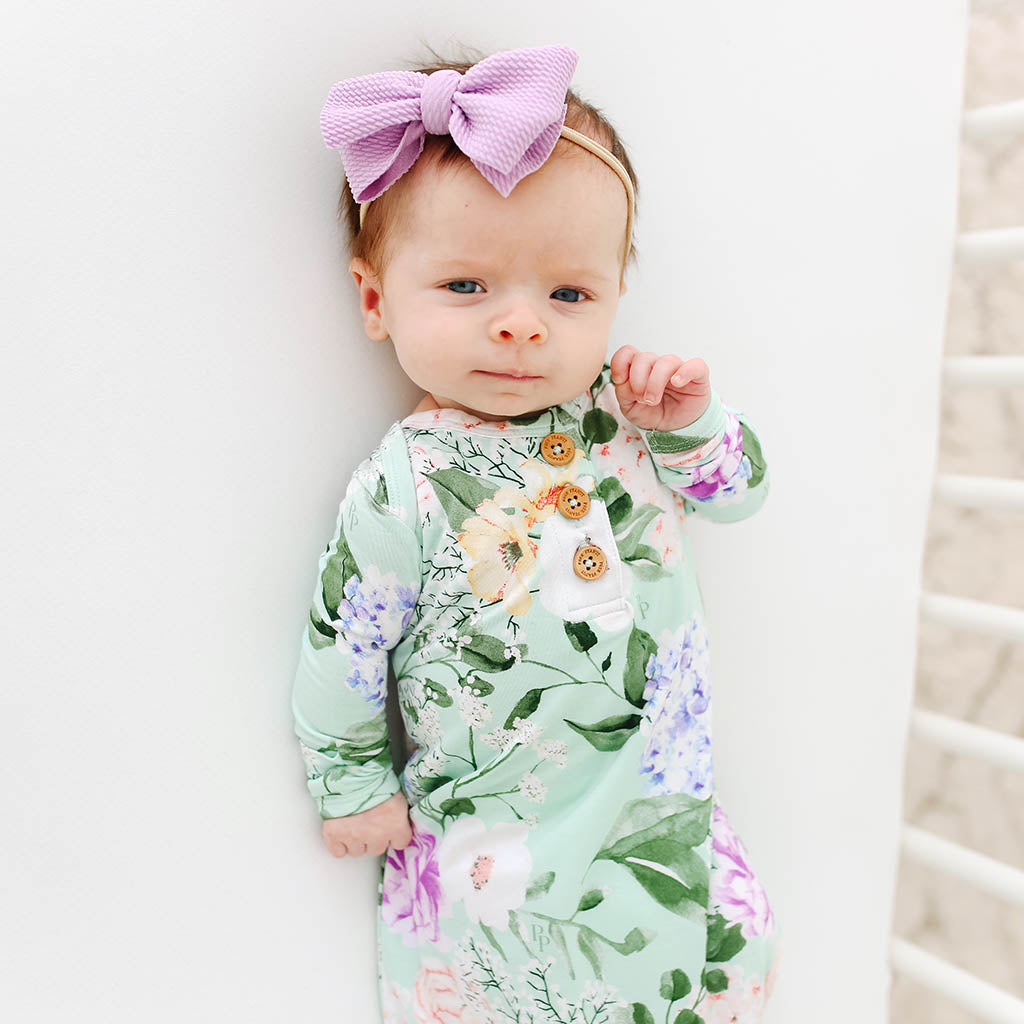 • Posh Peanut makes for the perfect buttery soft layette gown. The mermaid knot makes for the easiest diaper changes. Zipper bottom makes for easy diaper changes.