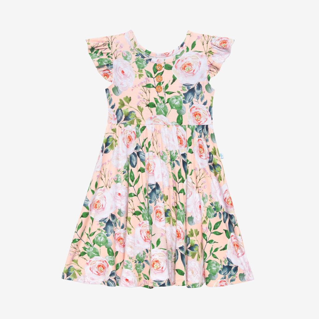 Posh Peanut Harper Ruffled Capsleeve Henley Twirl Dress