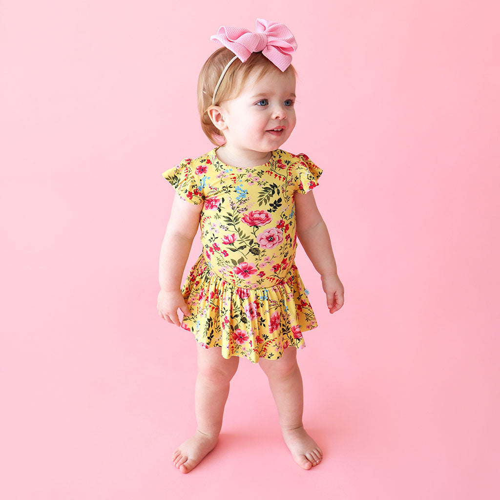 Posh Peanut Kina Ruffled Capsleeve Basic Twirl Skirt Bodysuit