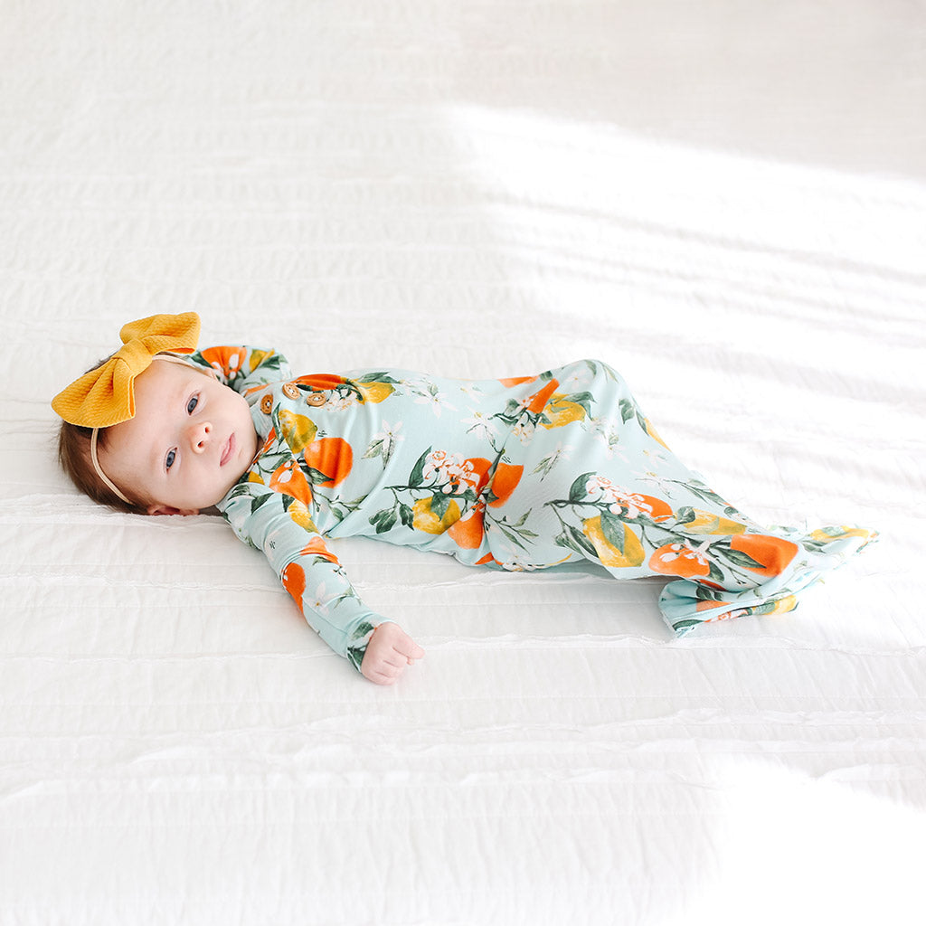Posh Peanut makes for the perfect buttery soft layette gown. The mermaid knot makes for the easiest diaper changes. Zipper bottom makes for easy diaper changes.