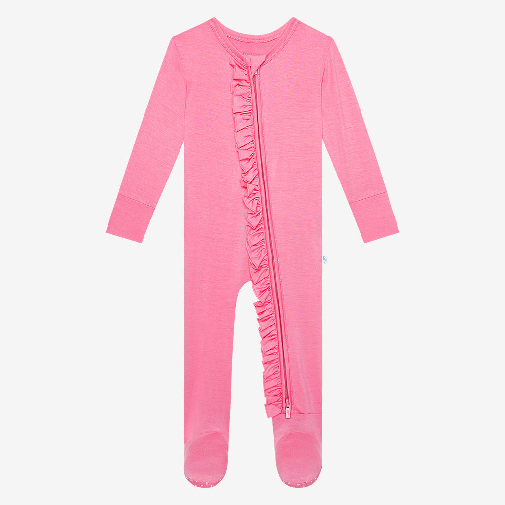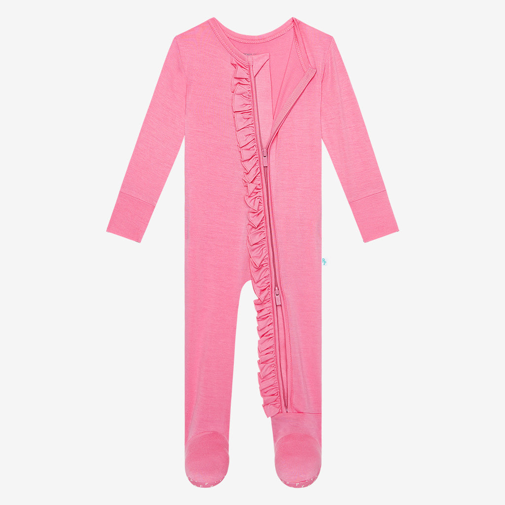 Posh Peanut Spring Berry Ruffled Zippered Footie