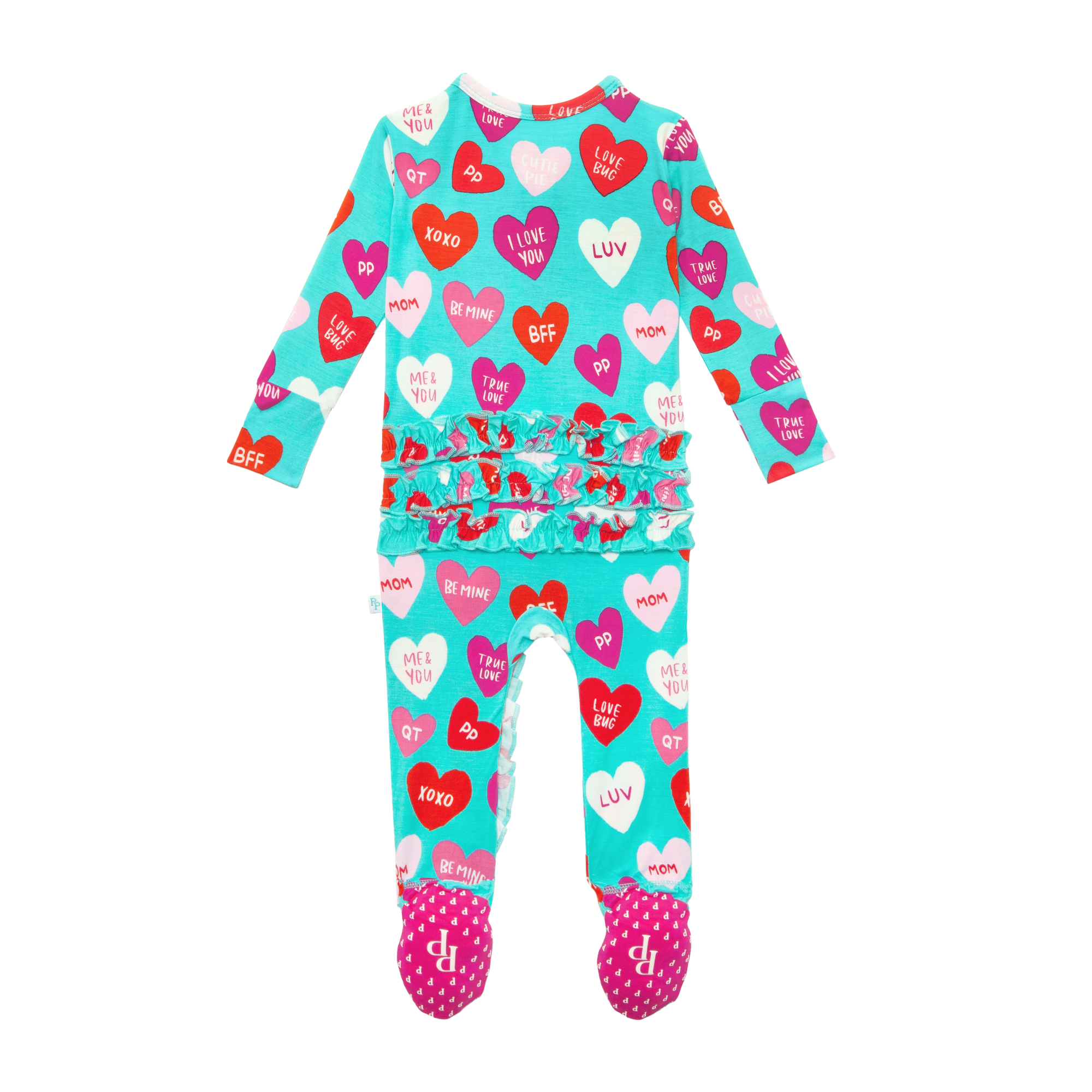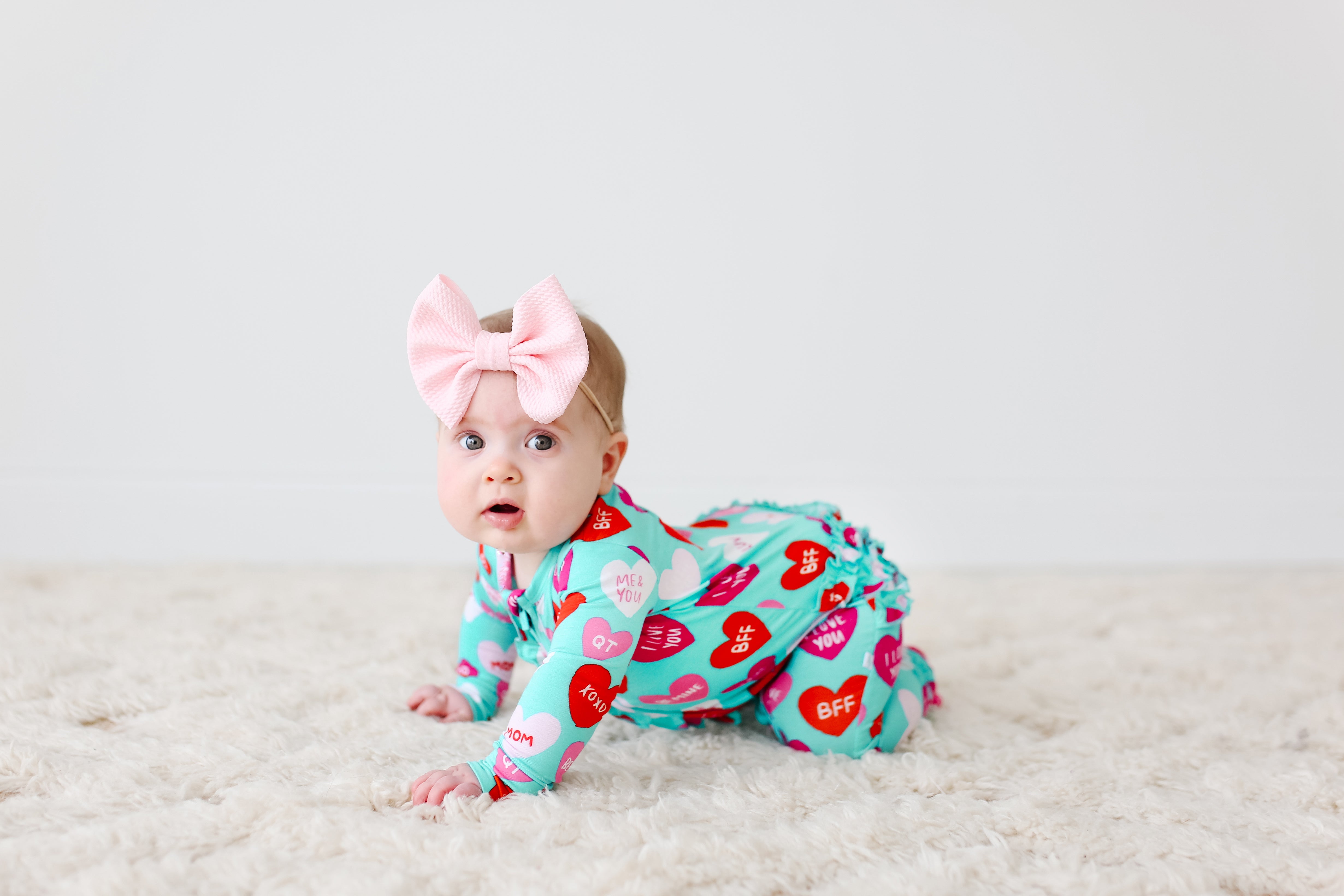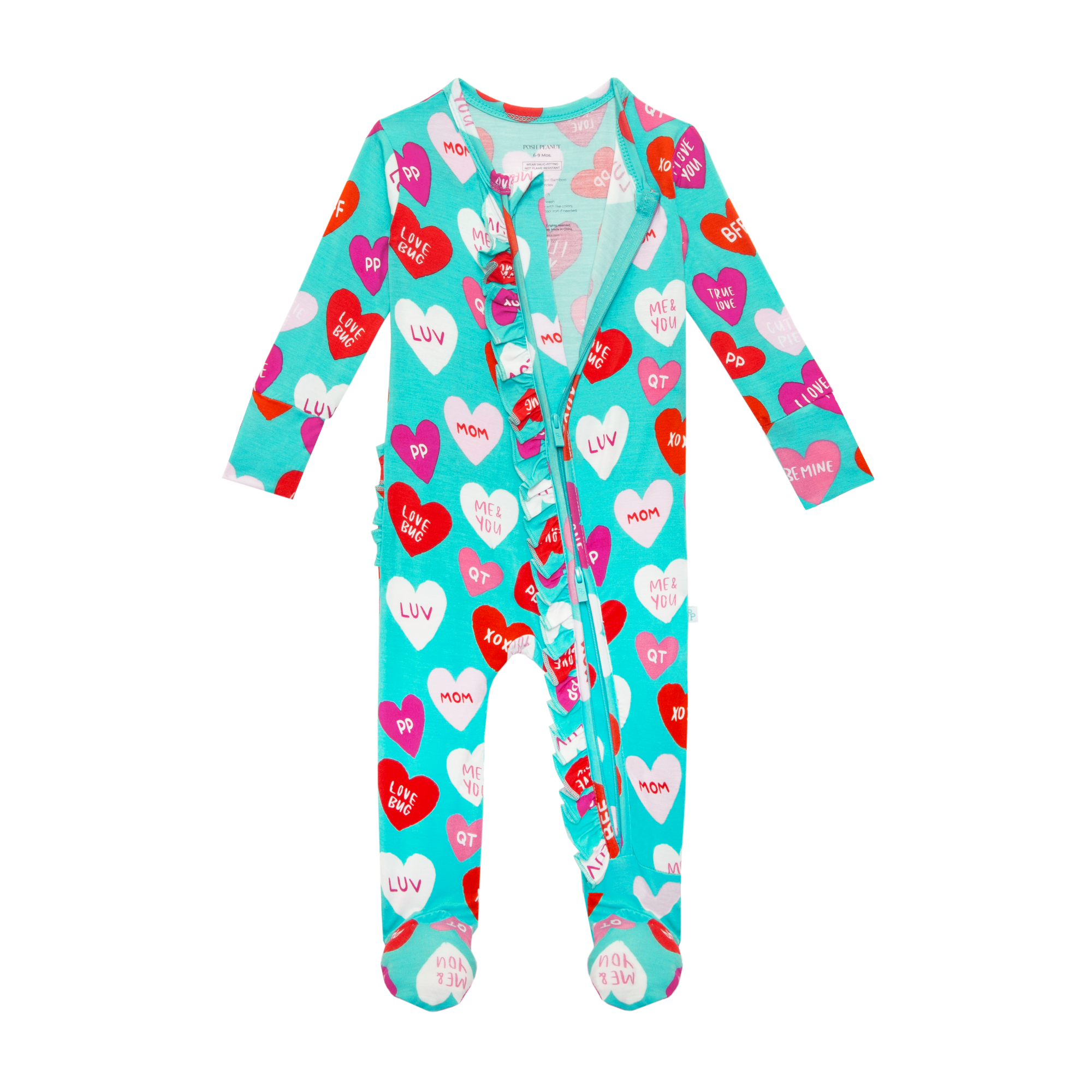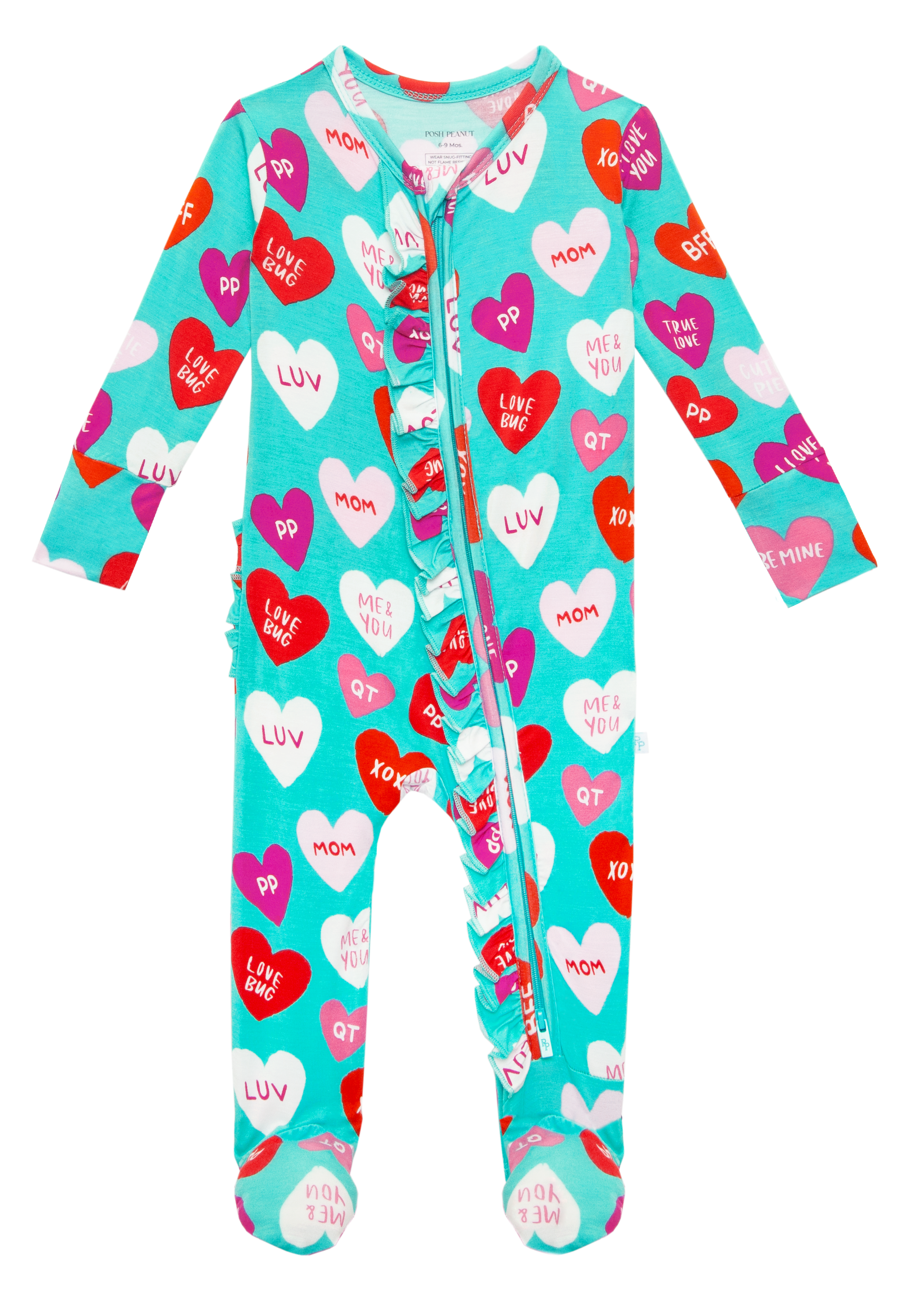 Viscose from bamboo one-piece footie coverall with reversible zipper opening. New reversible zippers are perfect for late-night changes and the ease of not undressing your peanut. Zip up or down for a quick change. Signature Posh Peanut Footie grips, elastic backing on footies for a snug fit and fold-over mittens in sizes NB and 0-3M. Buttery soft jammies so cute you can wear them out!