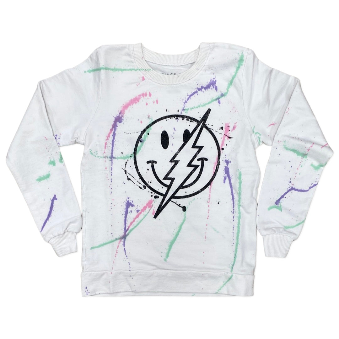 Prince Peter Tween Happy Face Splatter Sweatshirt - White