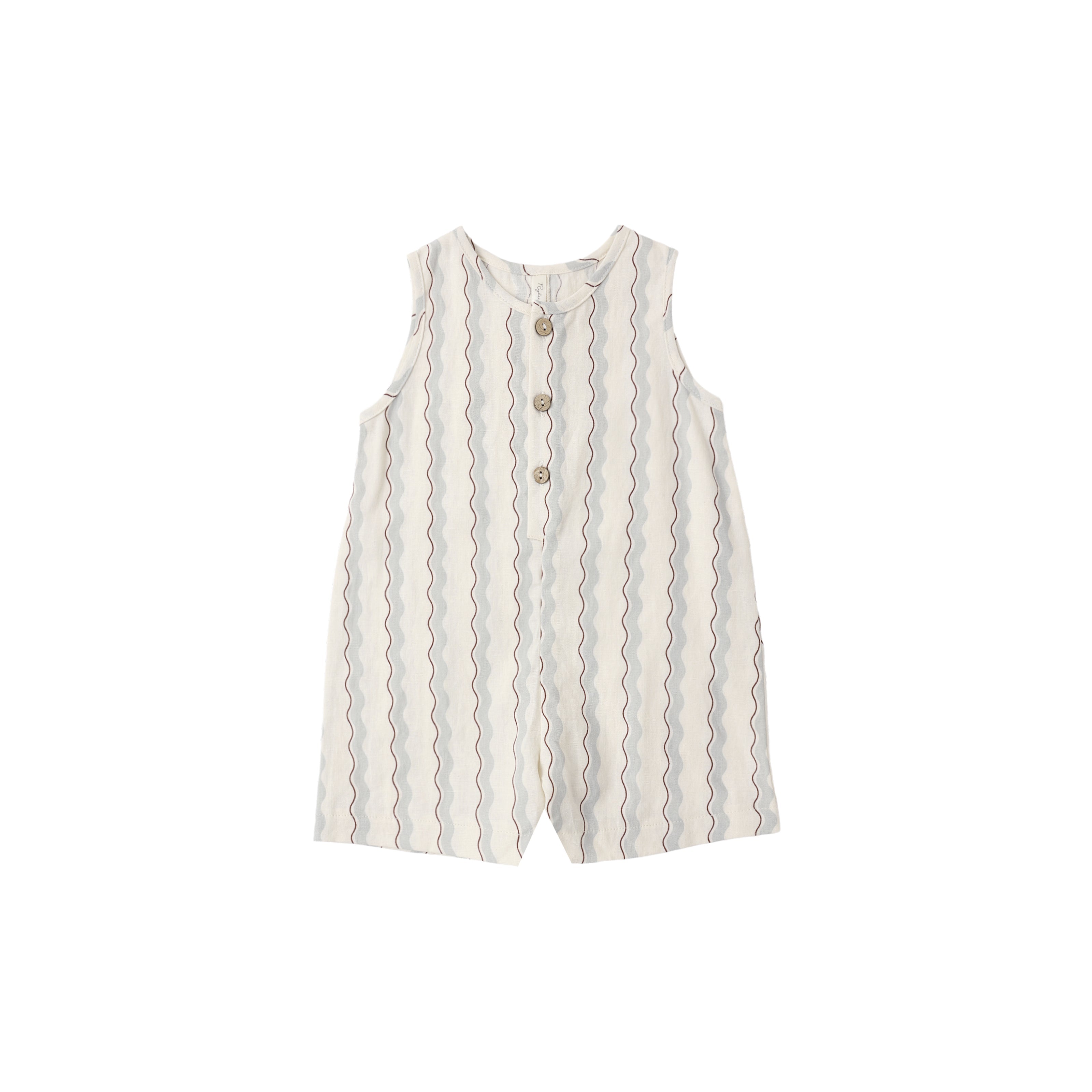 - This slim cut sleeveless romper is an everyday essential for the warmer days ahead. Includes front buttons and bottom snaps for easy changes.