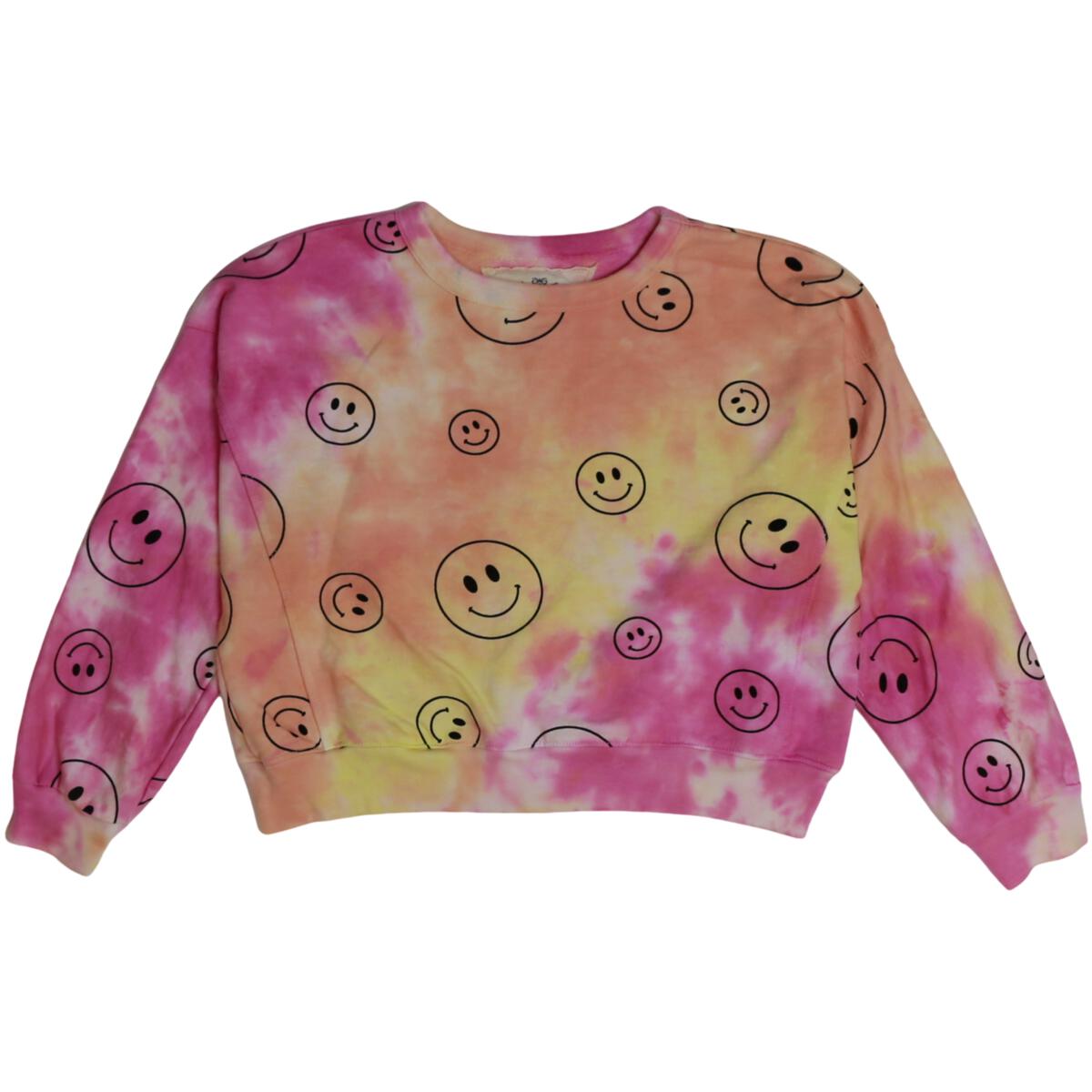 T2Love Tie Dye Happy Face Off Shoulder Dolman Sweatshirt