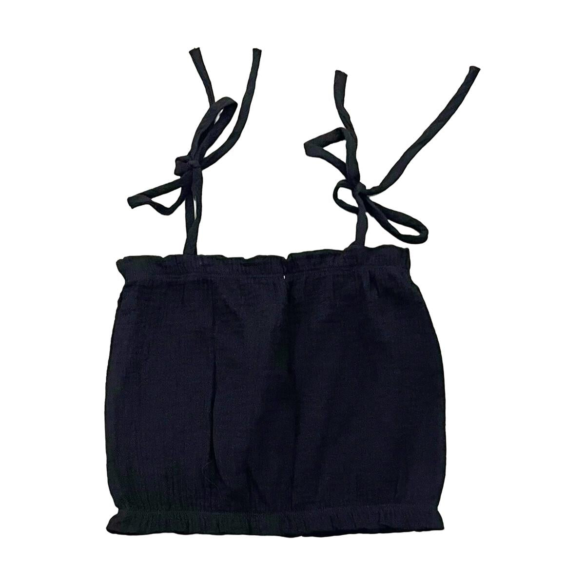 Tweenstyle by Stoopher Black Gauze Spaghetti Strap Tank w/Gathered Top & Bottom