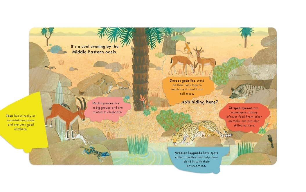 - There are lots of animals in the desert. Where are they hiding, and what are they doing? In this innovative lift-the-flap book, little ones can pore over the beautiful collaged pages and explore under plants, sand dunes, and rocks to find out interesting facts about desert wildlife.
